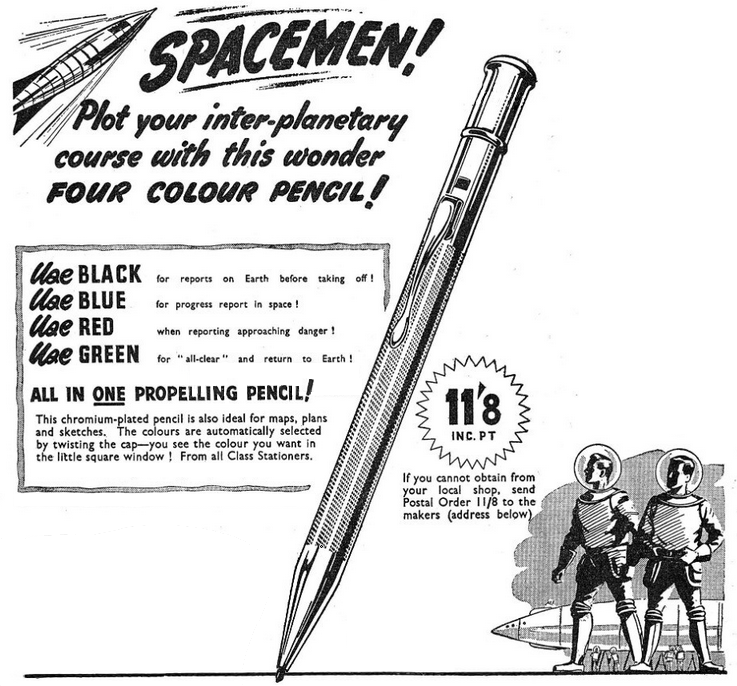 私は彼に銀色の 4 色ペンを渡し、その仕組みを説明しました。医者はそれを試してみた そして悪魔の物も素晴らしい贈り物であるという確信を笑いながら表明した。